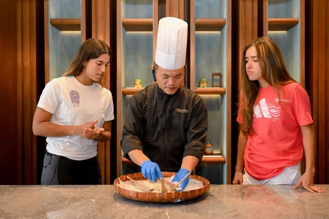 参加2025年广州国际女子网球公开赛的西班牙选手杰西卡·博萨斯·马内罗、哥伦比亚选手卡米拉·奥索里奥来到南沙岭南东方酒店,开启了一场兼具美食与文化的非遗粤菜品鉴活动。两位球员品尝了地道粤式美食,还亲手制作了非遗点心,更分享了对广州美食的新鲜感受,留下了温情满满的回忆。
